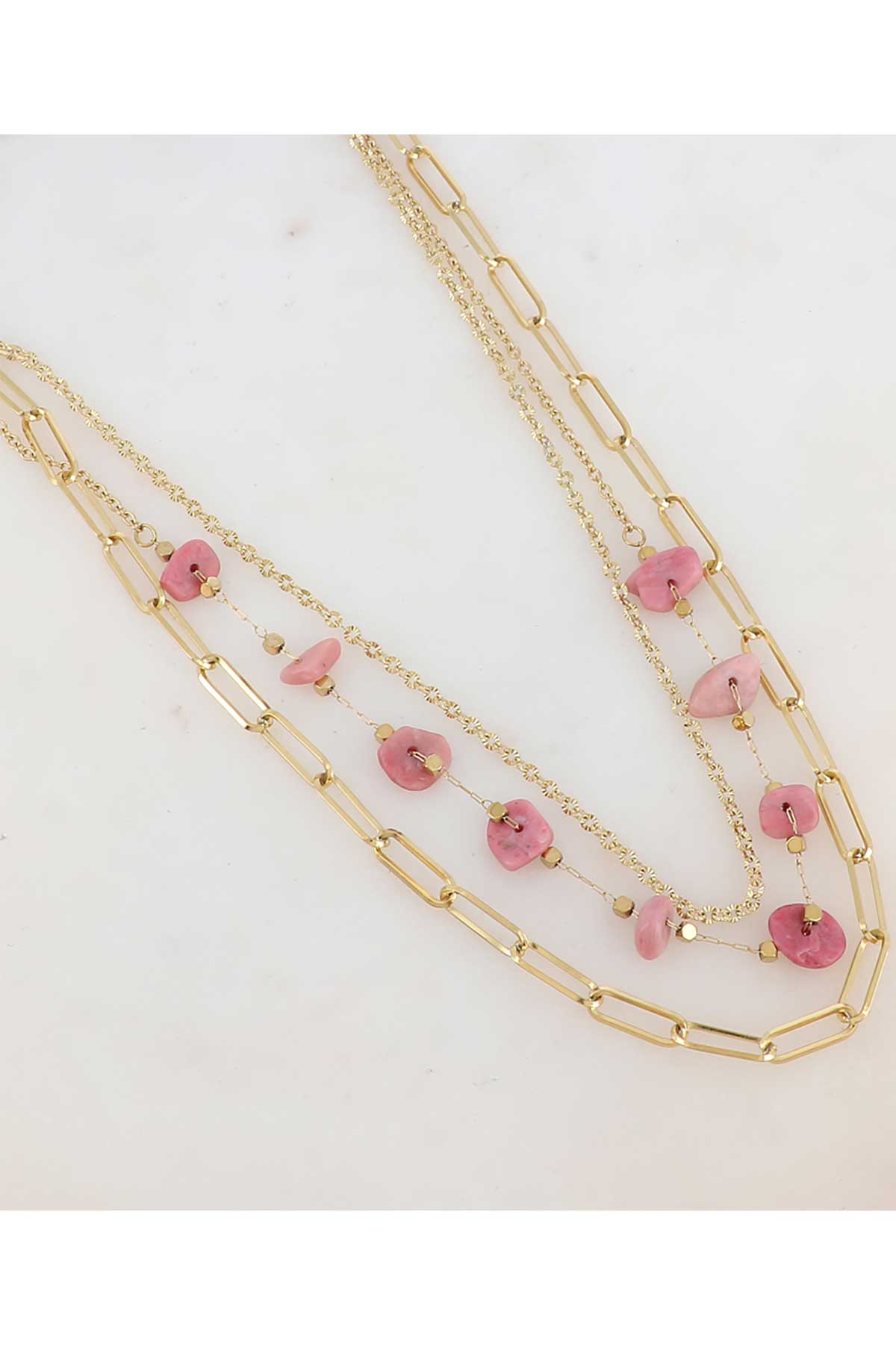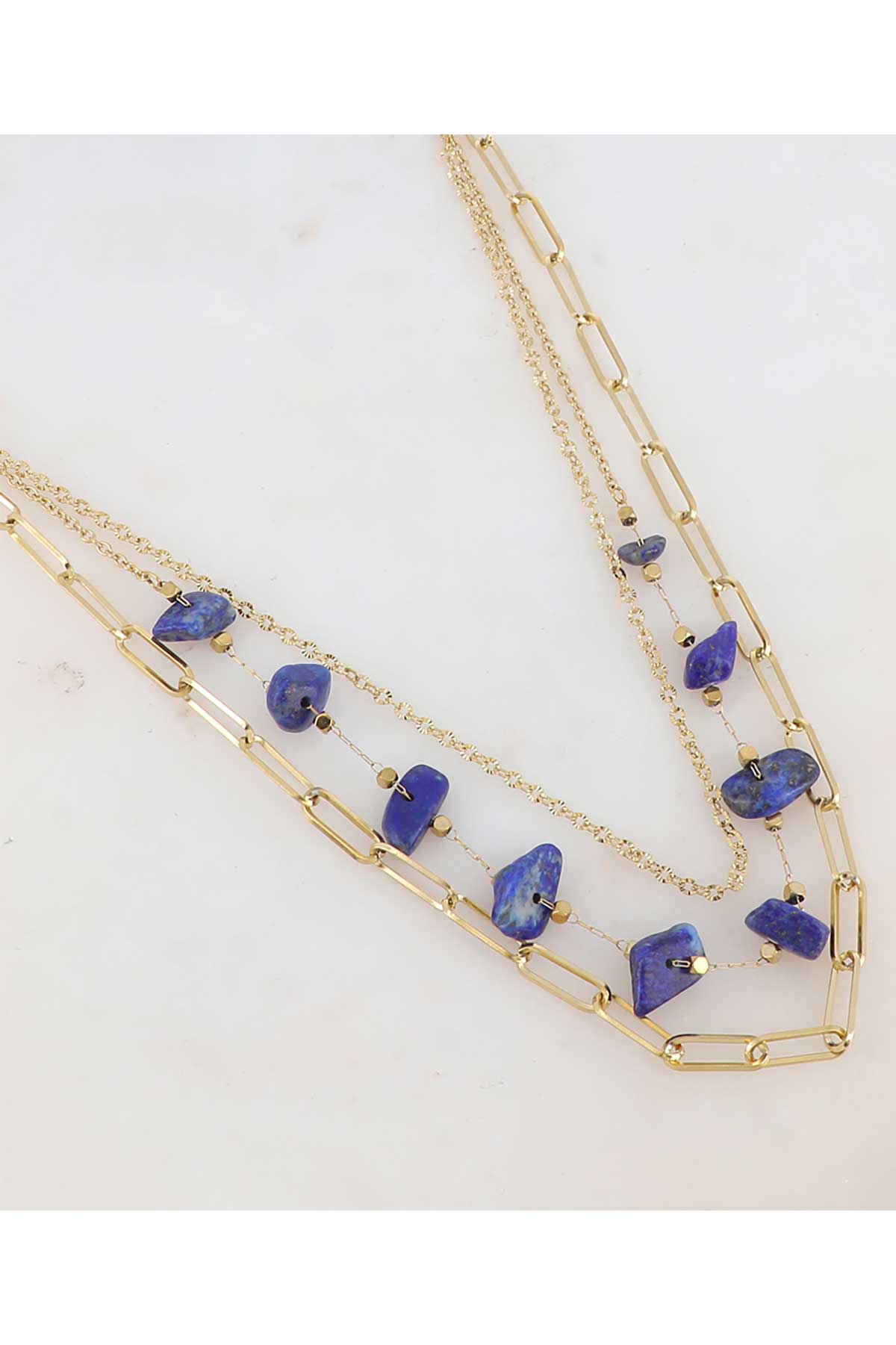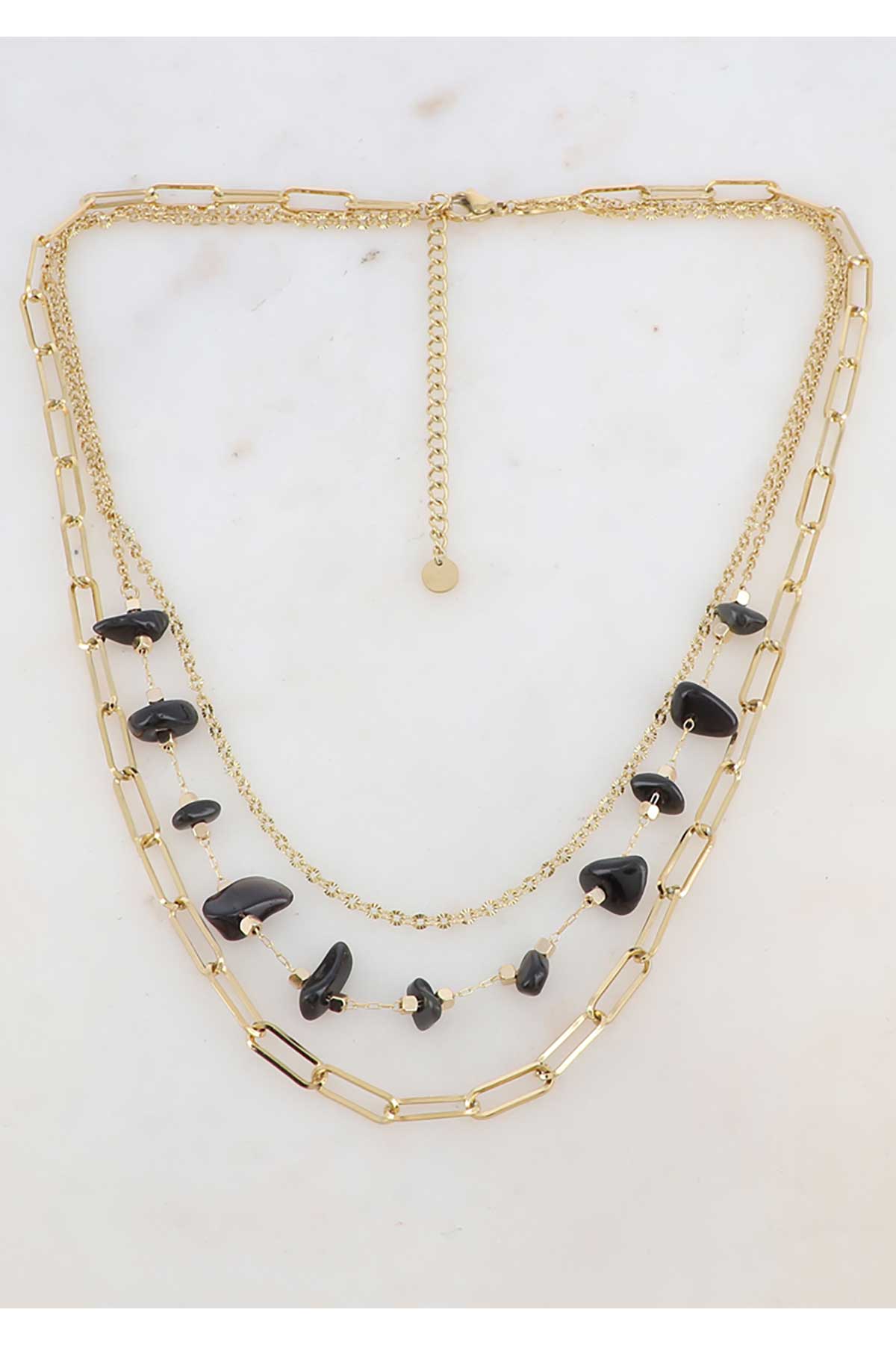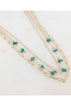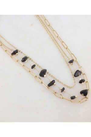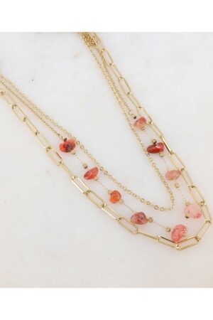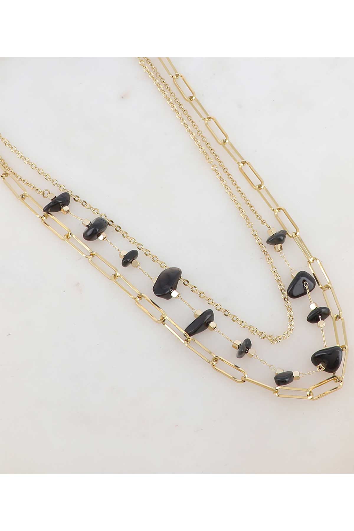 Hálsmen á þríraða keðju með náttúrusteinum.