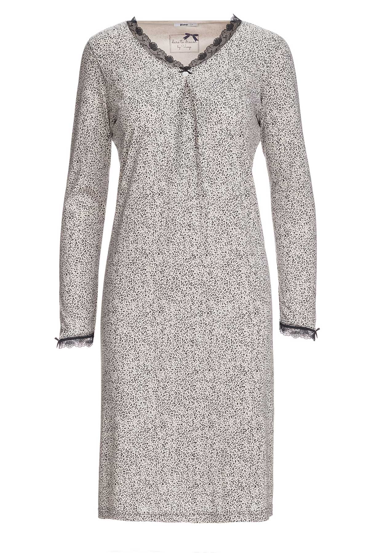 Náttkjóll – langerma – smámynstraður