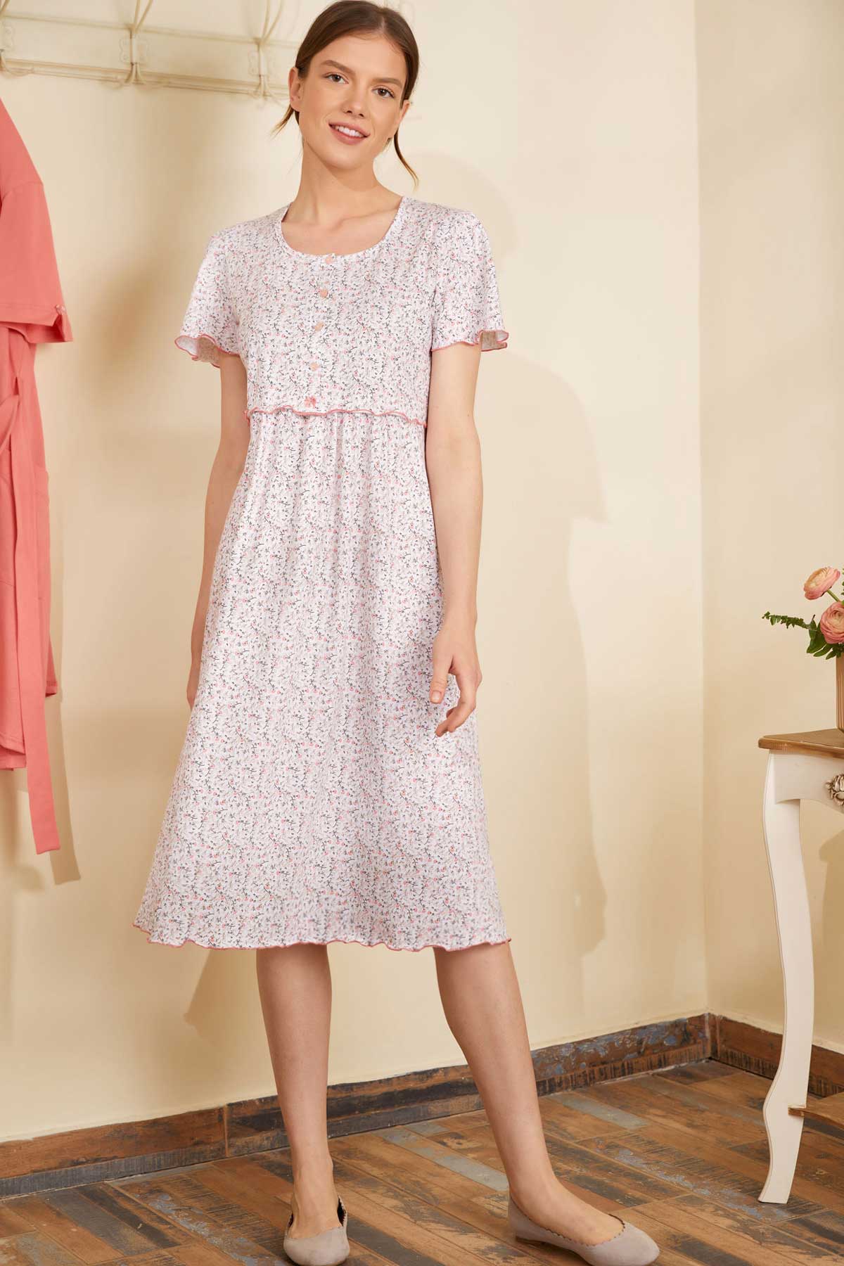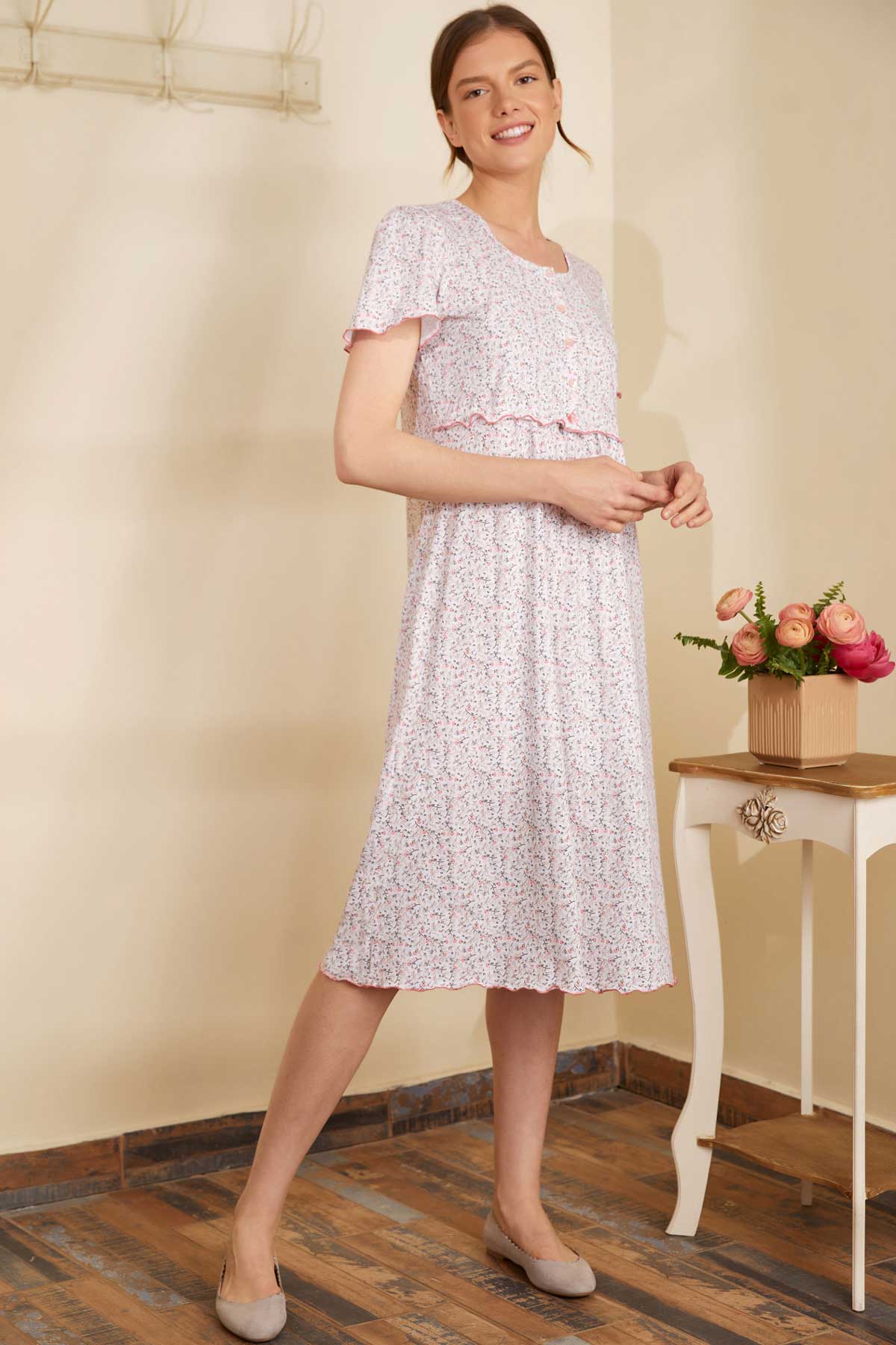 Náttkjóll með tölum – Bómull