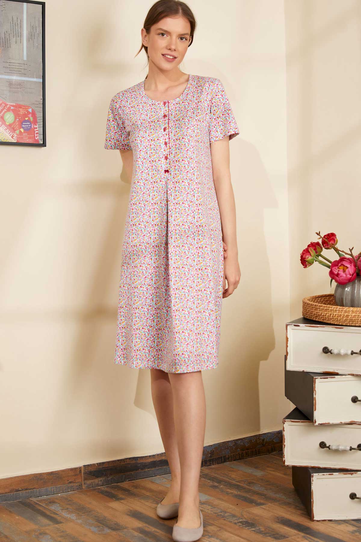 Náttkjóll – Mynstraður – Bómull